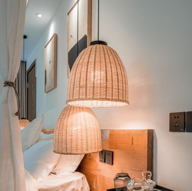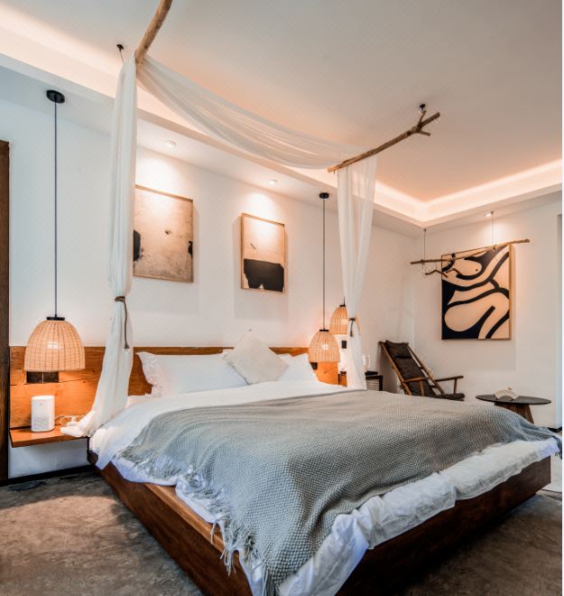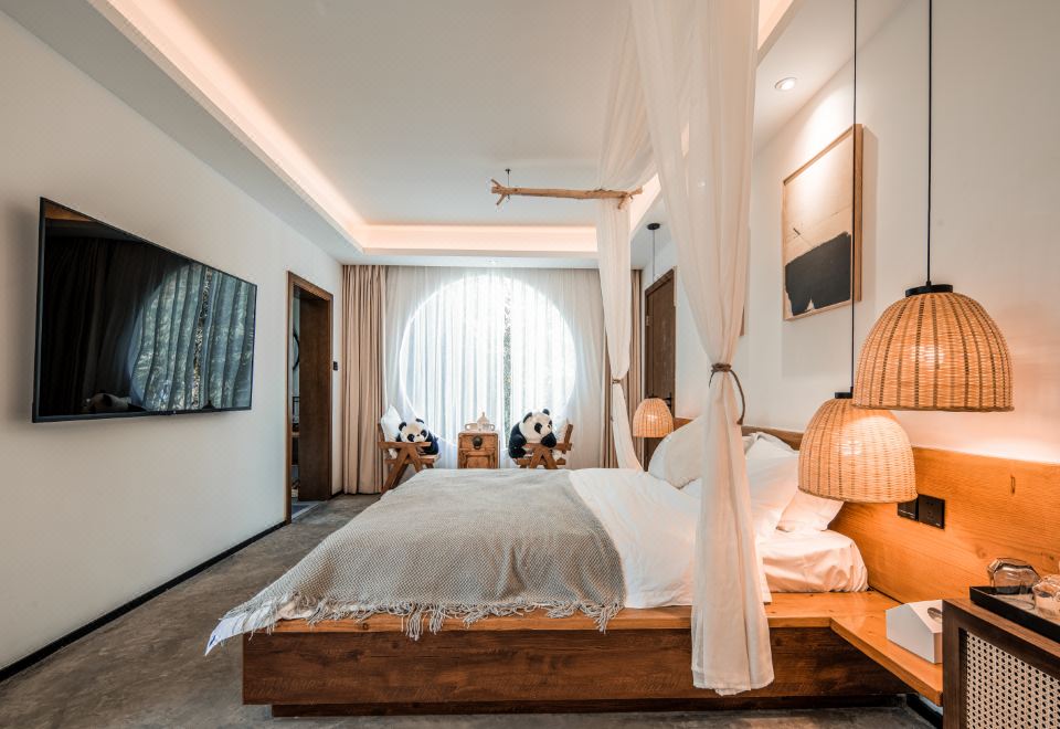 “筠”野奢竹林帷幔大床套房(野奢帷幔原木風格+全景竹林風景+發呆搖搖椅+景觀浴缸+智能馬桶)