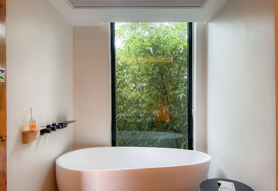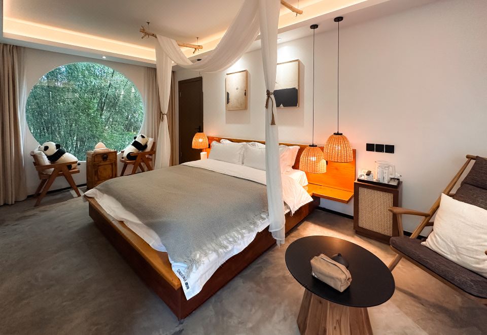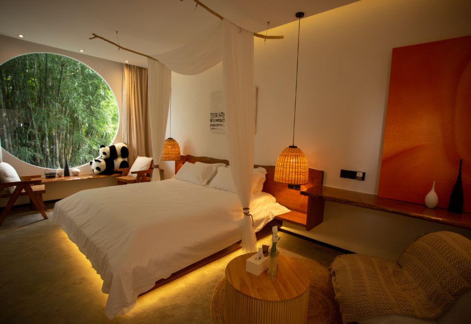 “芷”竹林秘境云端大床套房(野奢帷幔原木風格+超大禪意月亮窗+全景竹林風景+戶外露臺+景觀浴缸+智能馬桶)