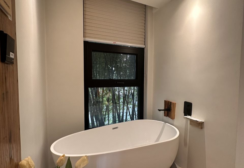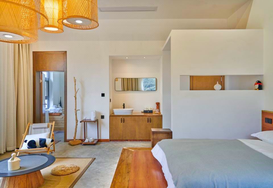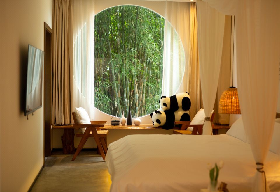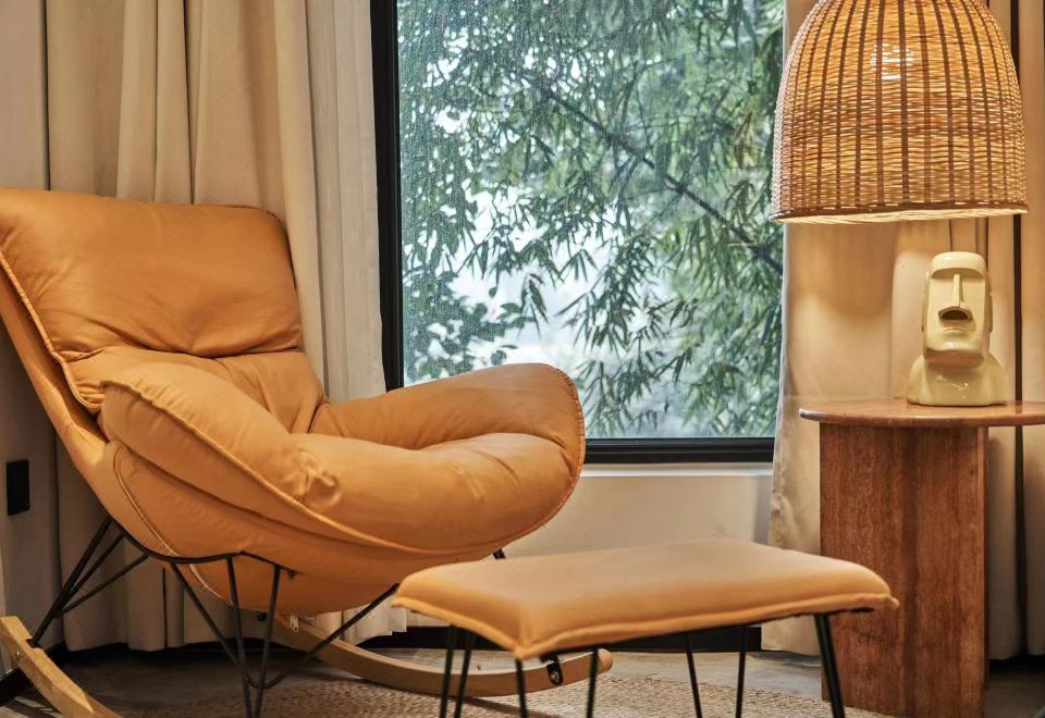 “筠”野奢竹林帷幔大床套房(野奢帷幔原木風格+全景竹林風景+發呆搖搖椅+景觀浴缸+智能馬桶)