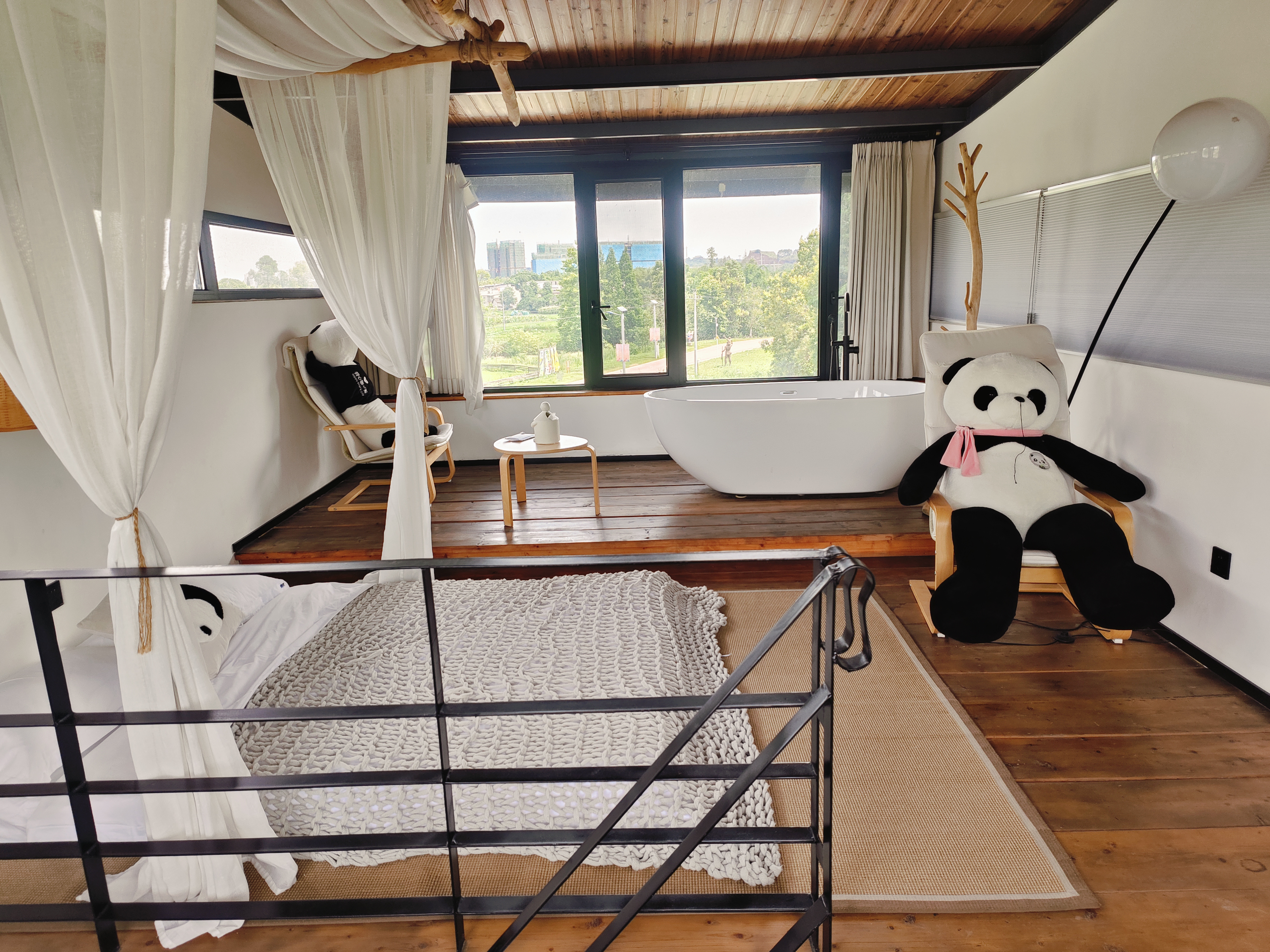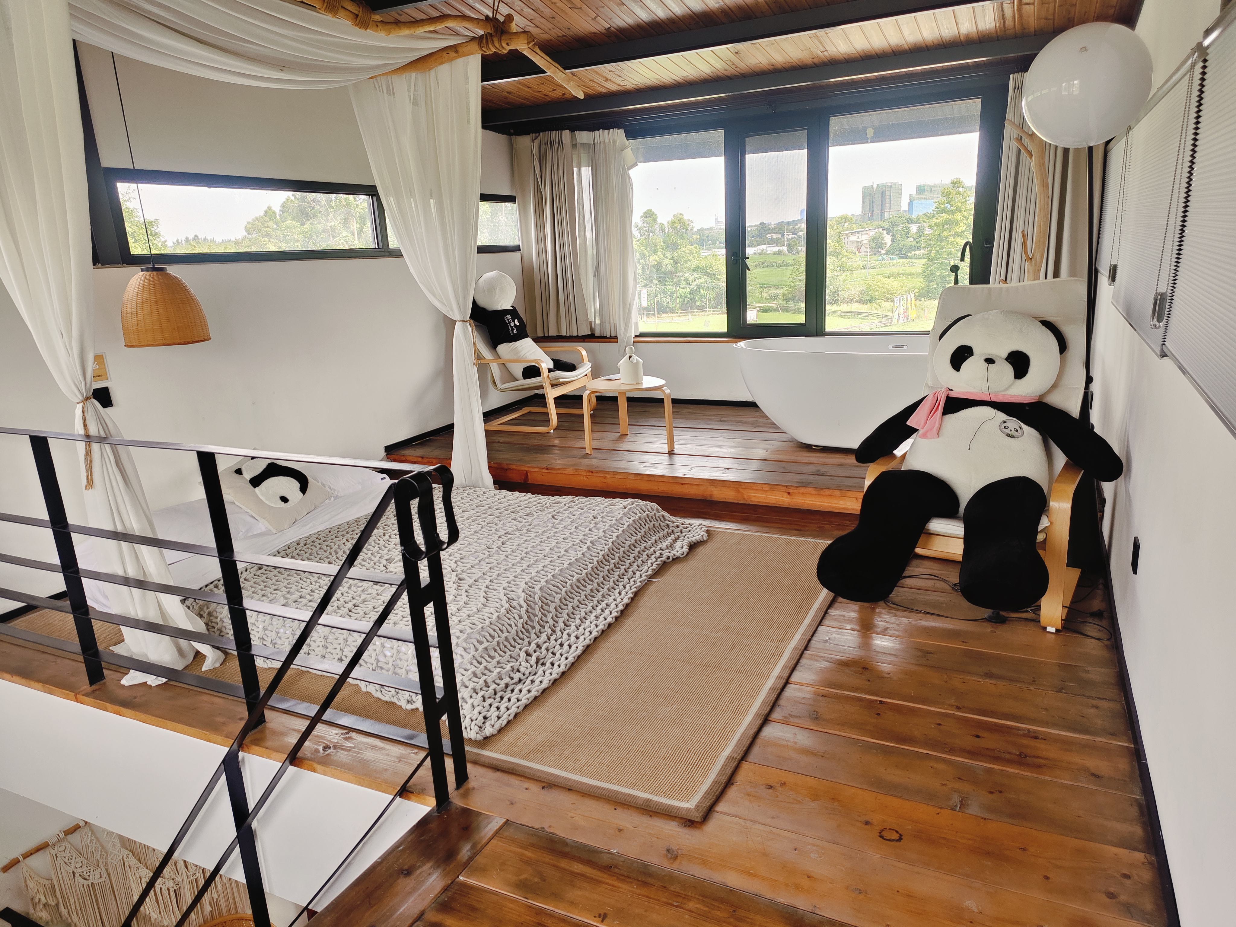 《菡》家庭亲子双层阁楼大套房(阁楼独立浴缸+日落全景田园风光+超大原木风榻榻米+影院音响+智能马桶)